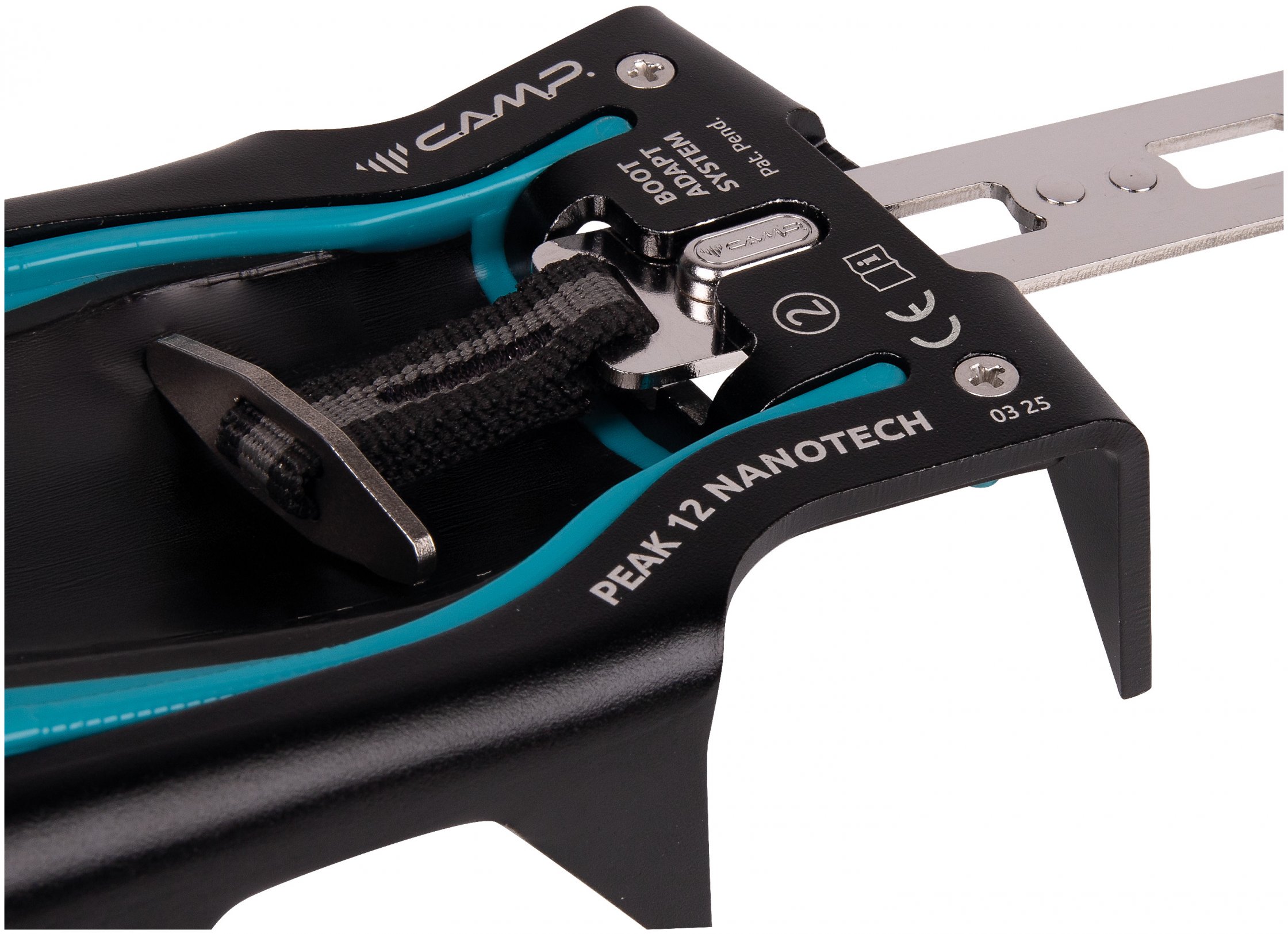 The CAMP Peak 12 Nanotech is a versatile crampon for all your skiing and mountaineering objectives. This crampon blends the security of a solid linking bar with the packability of a folding crampon. An ingenious system allows packing to a similar size as Dyneema linking bars, but provides enough security for extended front-pointing in both ski and mountaineering boots. While most aluminum crampons will dull quickly after use on rock, Alleima NanoFlex steel alloy inserts on the front and secondary points allow the Peak 12 Nanotech to hold up to much more abuse. The easy-to-adjust steel linking bar makes for quick transitions and length adjustment. Look no further for a quiver-of-one crampon!