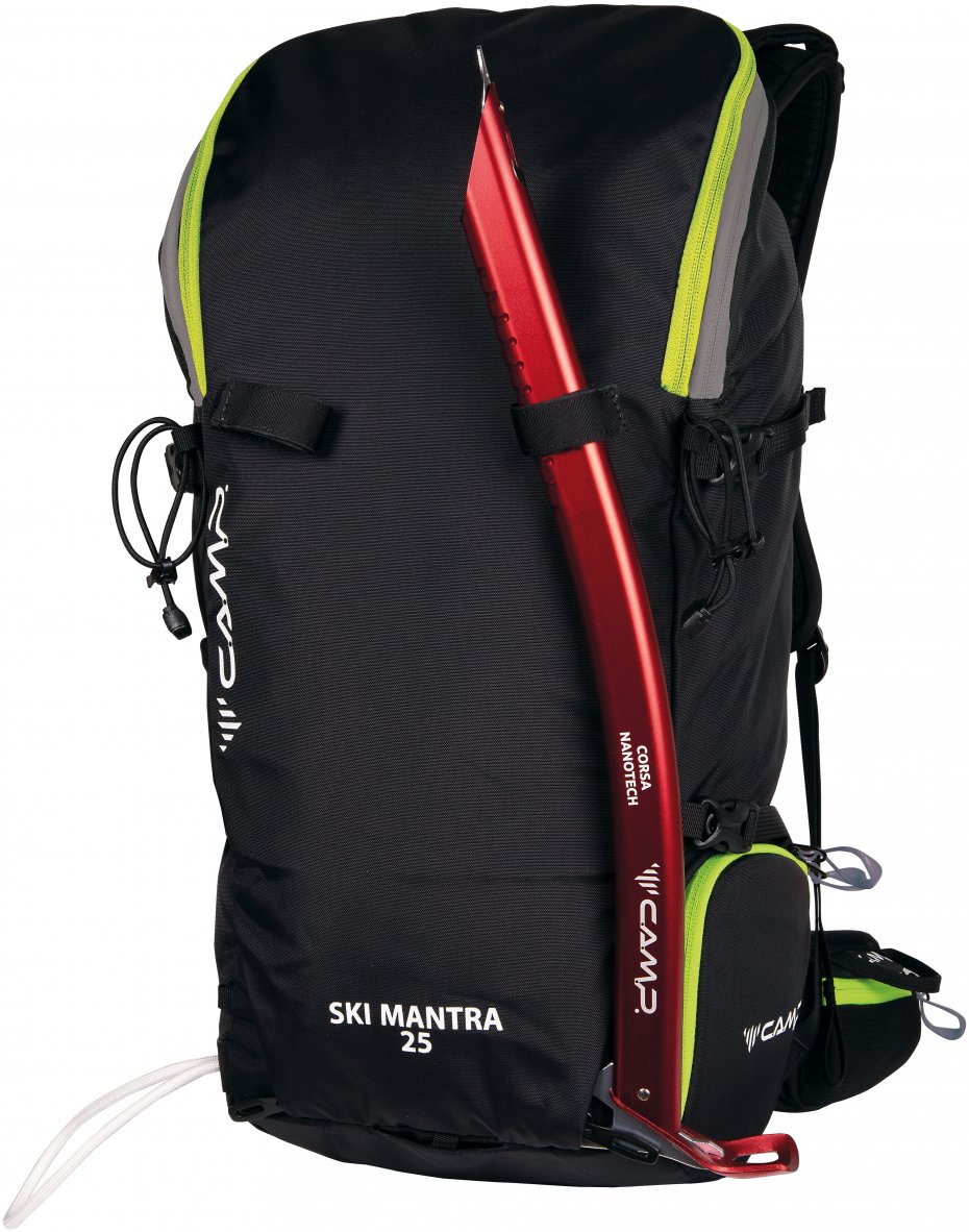- Two ice axe holders allow you to bring along the tools for technical missions.