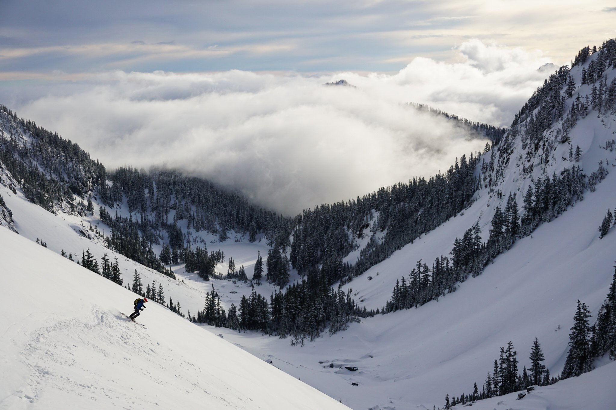 The Chair Peak Circumnavigation is the classic scenic tour in the Snoqualmie Backcountry. It travels through diverse terrain with plentiful options for side trips and steep lines. This tour is accessible for many ability levels and makes for a solid day out from Seattle in the closest backcountry in the Cascades.