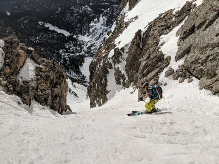 While the Dragon’s Tail Couloir gets skied throughout the winter, a springtime descent is recommended. Even with the snowpack stability that springtime can offer, this line will come with objective hazards that will need to be mitigated. Be wary of rapidly changing weather, shedding snow and rocks, as well other parties that may join you on the route. Despite these hazards, Dragon’s Tail can offer incredible turns on a sun-radiated aspect if you get the timing right. Dragon’s Tail will be a great introduction to the wonder that is Rocky Mountain National Park skiing and will have you looking around for more.