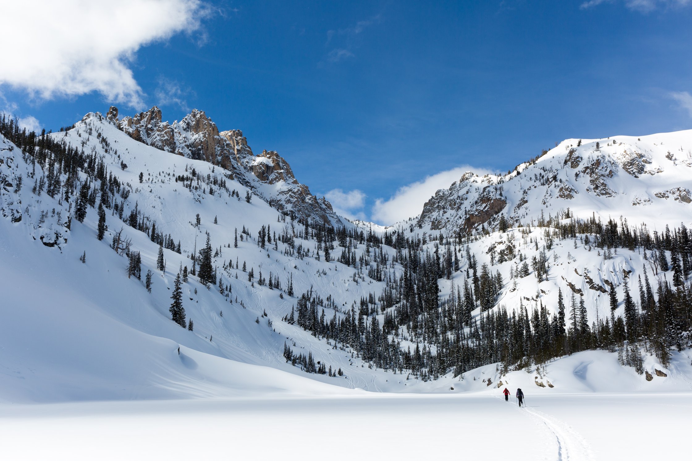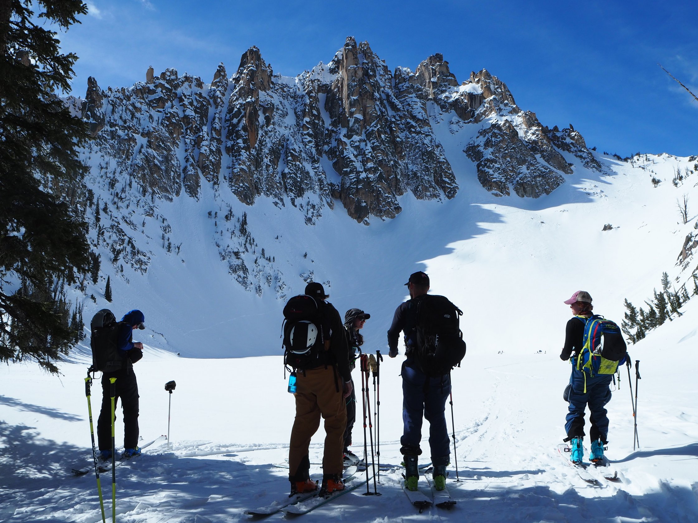 The Sawtooth Mountains are just that: toothy. And no other peak in the range rivals the raggedness of Mount Heyburn. The ridgeline looks like one that is straight out of Patagonia - stunning rock walls seemingly on the brink of tumbling off the mountain. Thankfully, a few ski lines cut through these impressive features. Most notably is the North Couloir which is also known as the Petzoldt Couloir. This North-facing refuge promises tricky avalanche conditions during mid-winter but offers a haven for cold snow through the warming months of March & April. Do yourself a favor and book a few nights at the Bench Hut, you’ll be wanting to ski this more than once.