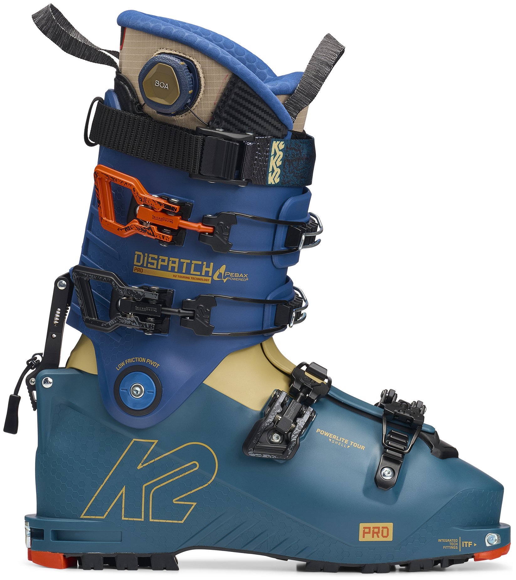 The K2 Dispatch Pro is a high-performance freeride boot built for skiers who venture deep into the backcountry and demand comfort, control, and performance. The BOA Fit System, integrated into the liner, helps fine-tune the fit by eliminating excess movement, helping stave off blisters on the up and increasing precision for the down. A roomier forefoot allows your toes to splay naturally, boosting comfort and circulation on long tours and big vertical days. On tricky booters or exposed ridge scrambles, the Vibram outsole provides reliable grip and traction where it matters most. Finally, the low-friction cuff pivots and 60-degree range of motion provide a friendly skinning experience, especially considering the boots' downhill potential. With a well-thought-out design and feature set, the Dispatch Pro is built for skiers who want to prioritize downhill performance.