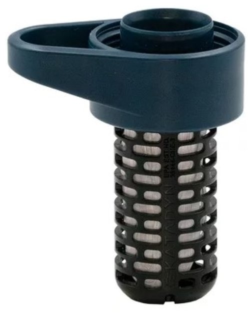 Update 2025: Katadyn has added an integrated plastic carabiner loop to the screw top and now offers two color options. Does not come with a replacement cap.