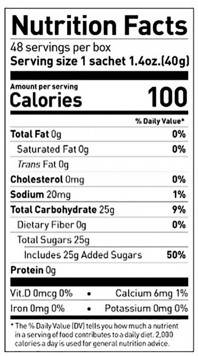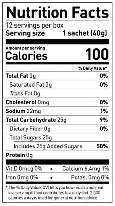 100 - Surprise to none, this gel contains 100 calories from 25g of carbohydrates. Just six simple ingredients and no allergens.