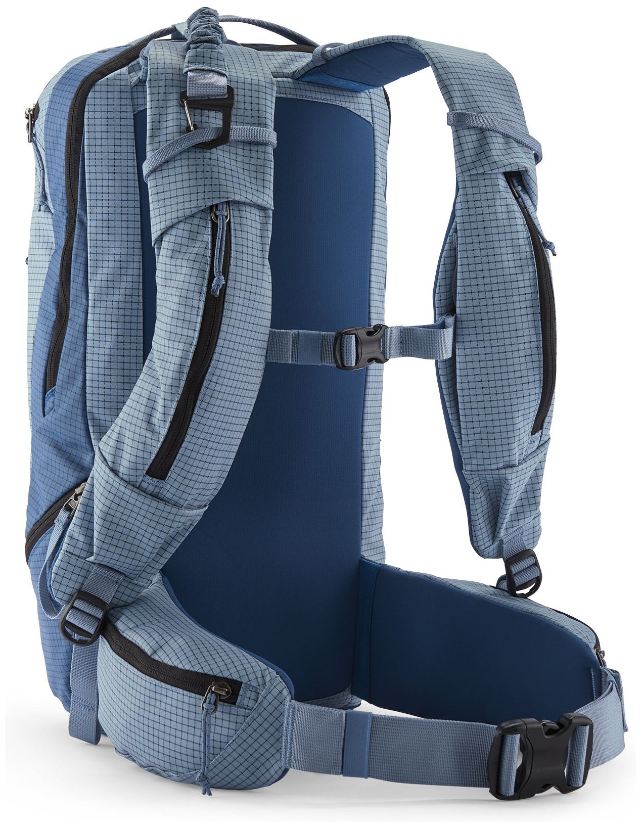 Introducing the Patagonia SnowDrifter 20L, a pack that has finally made us here at SkimoCo buy into the Patagucci hype. With an amazing blend of race-style features, wrapped in durable, water-resistant fabric that is strong enough for years of abuse. No bounce zippered shoulder pouches accommodate soft flasks, radio hand mic, and snacks. Lower down, the waist belt also has zippered storage on both sides. Quick ski carry and a separate skin/crampon pouch are both accessible without removing the pack, to ensure speedy transitions. Divided interior avalanche storage keeps safety gear close at hand. A separate top section for googles or glasses round out the organization features. From pre dawn tours to sidecountry stashes, the SnowDrifter 20L is engineered for efficiency on the slopes.