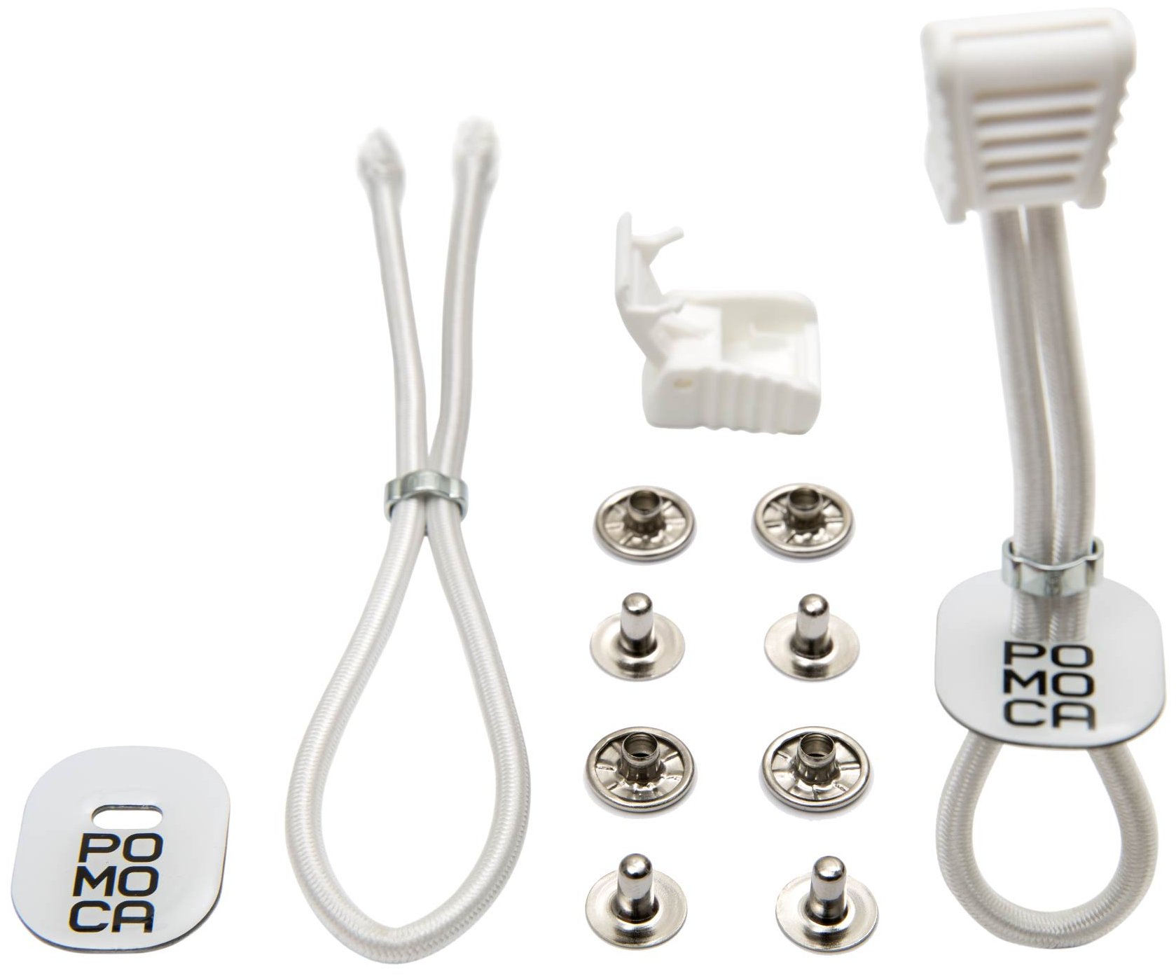 The Pomoca Top Fix RACE attachments consist of a highly elastic 3.5mm traction cord, an elliptical ring with excentric holes, and a plastic end cap. These weigh 9 grams per tip including two rivets and the adjustable plastic end grip (which is now white, not black as in the picture). If you don't like peeling climbing skins off your skis with your fingernails, consider adding some tip attachments. The price is for a pair that comes with installation instructions.