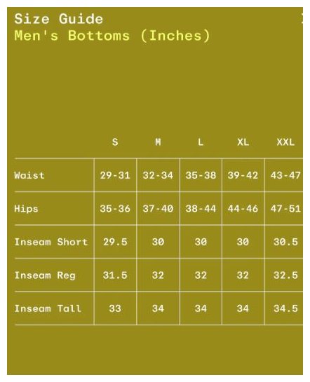 | Pockets | 2 pockets on upper thigh |