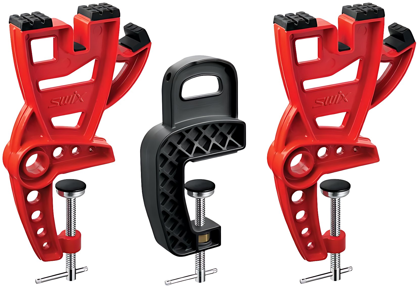 Designed to integrate seamlessly with tech bindings, the Swix Backcountry Ski Vise is a must-have tool for easier, more efficient base repairs and waxing. The central clamp includes two precision-molded holes that provide a secure place for your toe pins to lock in, keeping your ski stable, even during tough scraping jobs or p-tex repairs. Constructed from tough ballistic plastic, the vise is built to last. If you have end supports, you can opt to purchase the centerpiece only. If you need end pieces, snag the kit to make it the whole caboodle. Compared to the Toko version, the end pieces of the Swix kit allow for 60° and 90° access for working on your side edge. Whether you’re tuning edges, repairing your base, or prepping for a big tour with a fresh wax, the Swix Backcountry Ski Vise brings convenience and functionality to your home workshop.