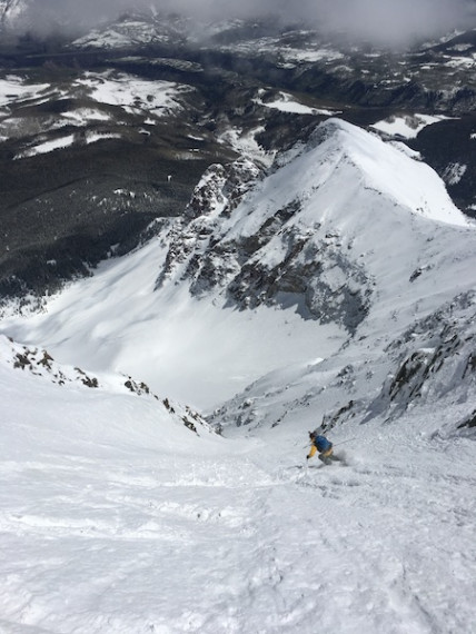 This line is about as iconic of a Coloradoan line as you can get. This peak has graced the cover of Coors cans and you’d have to be drunk to not want to ski it. The prime-time line off the summit is a long and exposed one that lies to the Northeast. It begins on an open face that can be very rocky. It’s possible to ski down the ridge to the skiers left in order to avoid cutting onto this large potential starting zone. Cliffs force the skiing to the right or center of the run where it gets steep and potentially rocky. This transitions into a couloir that continues down the mountain for a good while allowing some rhythm and plenty of pull outs to hide while your partner skis and avoid getting sluffed out. The line then opens up with a few chute options, but trend to the right for the cleanest and easiest escape. Some of the chutes cliff out, but they are easy to view from top down and avoid. The apron skiing is a refreshing finish with great views back up at this beautiful rugged mountain descent. Go get yourself a beer, maybe a Coors!